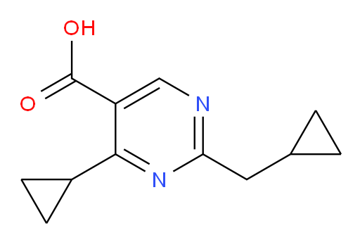 | Inchi | InChI=1S/C12H14N2O2/c15-12(16)9-6-13-10(5-7-1-2-7)14-11(9)8-3-4-8/h6-8H,1-5H2,(H,15,16) |