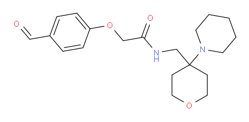 | Inchi | InChI=1S/C20H28N2O4/c23-14-17-4-6-18(7-5-17)26-15-19(24)21-16-20(8-12-25-13-9-20)22-10-2-1-3-11-22/h4-7,14H,1-3,8-13,15-16H2,(H,21,24) |