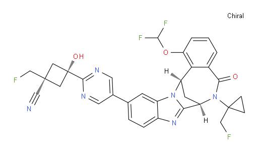 Canonical Smiles | N#C[C@@]1(C[C@](O)(C1)C1=NC=C(C=N1)C1C=C2C(=CC=1)N=C1[C@H]3C[C@H](C4C(=CC=CC=4OC(F)F)C(=O)N3C3(CC3)CF)N21)CF |