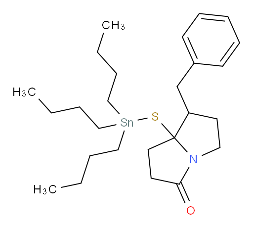 7-benzyl-7a-((tributylstannyl)thio)tetrahydro-1H-pyrrolizin-3(2H)-one