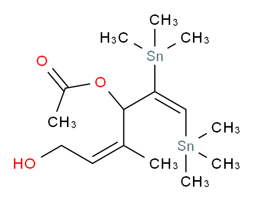 (1E,4Z)-6-hydroxy-4-methyl-1,2-bis(trimethylstannyl)hexa-1,4-dien-3-yl acetate