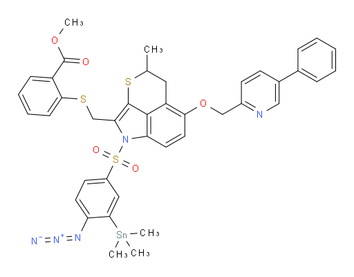 methyl 2-(((1-((4-azido-3-(trimethylstannyl)phenyl)sulfonyl)-4-methyl-6-((5-phenylpyridin-2-yl)methoxy)-4,5-dihydro-1H-thiopyrano[2,3,4-cd]indol-2-yl)methyl)thio)benzoate