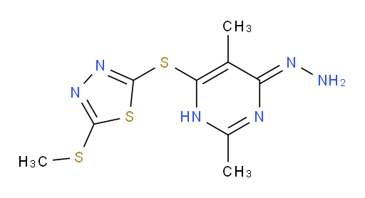 (Z)-2-((6-hydrazono-2,5-dimethyl-3,6-dihydropyrimidin-4-yl)thio)-5-(methylthio)-1,3,4-thiadiazole